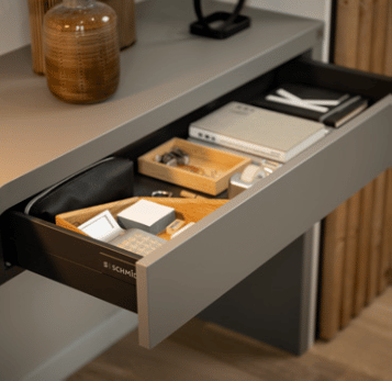 Schmidt research has found that the most comfortable height for your worktops should be between 85 and 95 cm. Our Schmidt Designer can measure the optimal height of the kitchen work top to suit you. This is just the beginning, as a Schmidt bespoke kitchen design makes allowance for 4 depths to your base cabinet depending on your requirements and any cabinet width can be achieved. Cupboard plinth heights can also vary from 7 to 20cm!